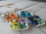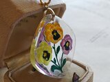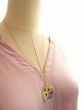ヴィンテージ 3色のパンジーFlowerインタリオGlass(34㎜)ネックレス
