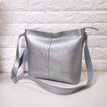 ★ハンドメイド★日本製★ソフト・本革★斜め掛けショルダーバッグ★シルバー色★A4クリアファイル★