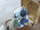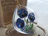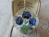 ヴィンテージ DarkパープルのパンジーFlowerインタリオGlass(34㎜)ネックレス