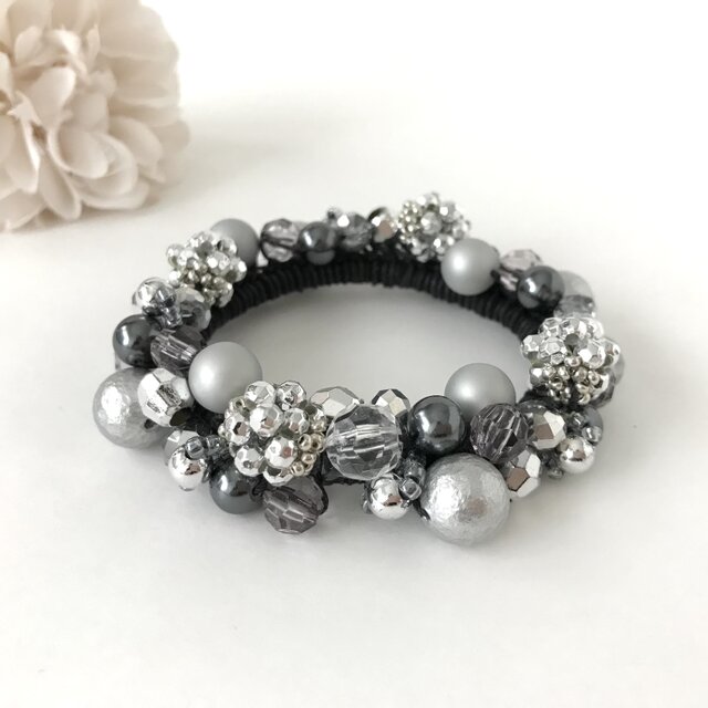 高級感漂う上品なシルバー色のシュシュです。