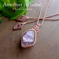 やや大きめサイズで良質なマダガスカル産アメジストカテドラル 原石の1点ものマクラメ編みペンダントネックレスです。