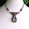 魅力的な天然石が引き立つように丁寧に編み込んで、首元を彩る女性らしいマクラメアクセサリーに仕上げました。
