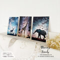 《ポストカード 3枚》☘️シカ キリン ゾウ 星空 サファリ 動物 イラスト アート ハガキ セットです♪ ::::5点売れました::::