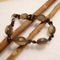 茶色のストライプ模様のレトロ感あふれるマリンビーズが特徴です。