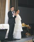 実例写真!ウェディングドレス アイボリー 柔らかく重ねたチュールスカート 流れる透け花レース ふわふわ キャミソール 花嫁