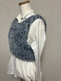 アニマル調のファー毛糸で丈の短いベストを編みました。