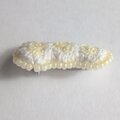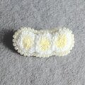 白っぽいタンポポが並んだようなもこもこブローチ。