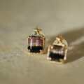 黄昏時の神秘的な空のようなニュアンスカラーのバイカラートルマリンに優しく光を照らしてくれる小さな星をちょこんと添えた天然石のピアスです
