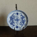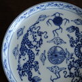 シノワズリな雰囲気◆雲と龍と宝珠。中国産 宝珠龍文印判中皿プレート チャイナレトロ インテリア