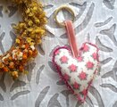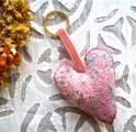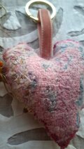 布フェルトハートのチャーム ピンク〈布フェルト キーホルダー ハート インド綿 ブロックプリント 〉