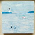 10㎝角の木製パネルに紙を貼り、手描きで絵を描いたアートパネルです。