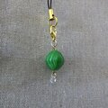 <天然石風ビーズシリーズ>ストラップ(緑色系/金具:金色)