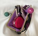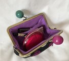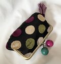 スペインからの輸入生地 ドット柄で作りました木玉がま口ミニポーチです