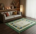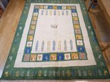 ペルシャ ギャッベ リビング ラグ 195x150cm 緑色 ベージュ パネル RJ6410s」