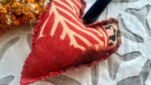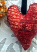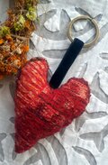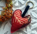 布フェルトハートのチャーム 赤色 草木染め〈布フェルト キーホルダー ハート インド綿 ブロックプリント 〉