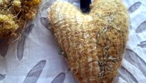 ハートのまわりは手縫いでちくちくしました。