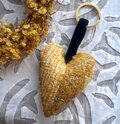布フェルトハートのチャーム 黄色 草木染め〈布フェルト キーホルダー ハート インド綿 ブロックプリント 〉