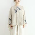 比翼仕立てノーカラーブラウス・リネン【手描きアラベスク模様】