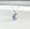 綺麗なパープルのドロップ型パールを選び、葉っぱのバチカンを付けてペンダントに仕立てました。