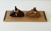 土台の板は、直線的な柾目のものが6点と、所謂放物線状の木目的な板目のものが2点ございます。一番最後の写真のみが、板目の台にのせたときのイメージです。