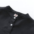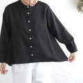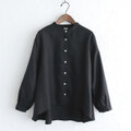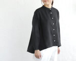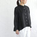 カジュアルからフォーマルまで リネン バンドカラーAラインシャツブラウス (ブラック)TP10