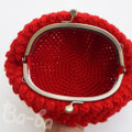 真っ赤な毛糸をバブルステッチで編み、がま口にしました。