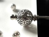 かんざし アジアンエスニック花柄の透かしボールビーズ シルバー 一本挿し 一本簪 アンティーク風 夏 涼しげ