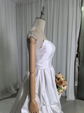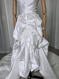 実例写真!ウェディングドレス ベアトップ シルクタフタ フィッシュテール デザイン感 結婚式 前撮り
