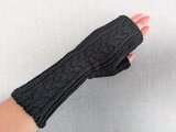 コットンリネンのケーブル編みのハンドカバー黒