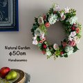 【迫力の50cm!】1点ものアート!ガーベラと宿根スイトピー。苺が可愛い❤︎甘酸っぱそうな新緑リース 好評につき再販!
