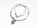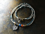 ヴィンテージインドメタルトップ、ミゾーラムカーネリアン、発掘ビーズ、古代瑪瑙、ホワイト&エメラルドブルービーズなどを繋いだ2連ネックレスです。