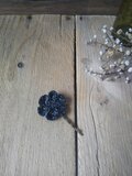 黒のラメ入りのレース糸で編んで制作した、お花のヘアピンです。