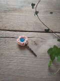 薄ピンク×ブルーカラーのレース糸で編んで制作した、お花のヘアピンです。