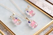 レジンアート 長方形のペンダント〈花びらの行方〉