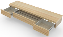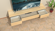 3つの独立した引き出しを備えた収納スペースにより、AV機器やリモコン、小物類をすっきりと整理できます。引き出しはスムーズに開閉でき、使いやすさを重視した設計になっています。