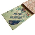 本作品は織物アート(美術織物)を使用いた額絵織物御朱印帳です。古くより日本に残る素晴らしい美術の数々を、桐生織物が「織」で再現した布を使用しております。単独でも芸術性高く大変素晴らしいこの織物に、に更なる仕事を施し御朱印帳という形に。本作品を通してより多くの皆様に桐生織物の魅力を知って頂けましたら幸いです。