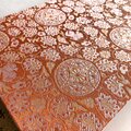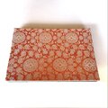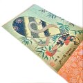 一三〇〇年以上の長い歴史を持つ桐生織物は「西の西陣、東の桐生」と伝えられて来ました。織物の都、桐生では、織と色彩に富むクオリティー高い織物が勢揃いします。中でも大きく広げて一際目を惹くのは大柄の金襴織物です。御朱印帳の様に比較的コンパクトな小物の世界では、迫力ある大柄の生地が使用される事は珍しい印象です。他に類を見ないとも言われる桐生織物。ダイナミック且つインパクトを放つ布から得られるインスピレーションを元に、B5サイズの見開き御朱印帳を厳選プロデュース致します。織が魅せる立体感や色彩の美しさ、また素晴らしい芸術の世界をお楽しみ頂けましたら幸いです。