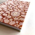 B5サイズでは力強さ、個性的なインパクト、そして存在感を重視致します。織物の芸術性をそのまま大きく形に取り、品格や優美溢れる贅沢な要素をB5サイズのフレームに捉えます。表紙単独でも、2枚表紙を開き1枚としても「絵」となる様、織柄の配置と全体像を熟考します。