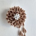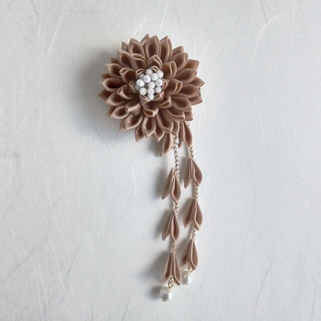 小さなダリアの髪飾り つまみ細工 ミルクティー クリップ 《成人式、七五三、お宮参り、和装》