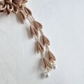 花はピンクブラウンの柔らかく光沢のある布で作った花びらを幾重にも重ねて作りました。