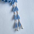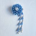花は水色の柔らかく光沢のある布で作った花びらを幾重にも重ねて作りました。
