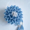 小さなダリアの髪飾り つまみ細工 水色 クリップ 《成人式、七五三、お宮参り、和装》