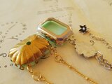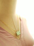 ヴィンテージ ミントGreen 春のお花達(25×18㎜)横向き Goldトーンネックレス