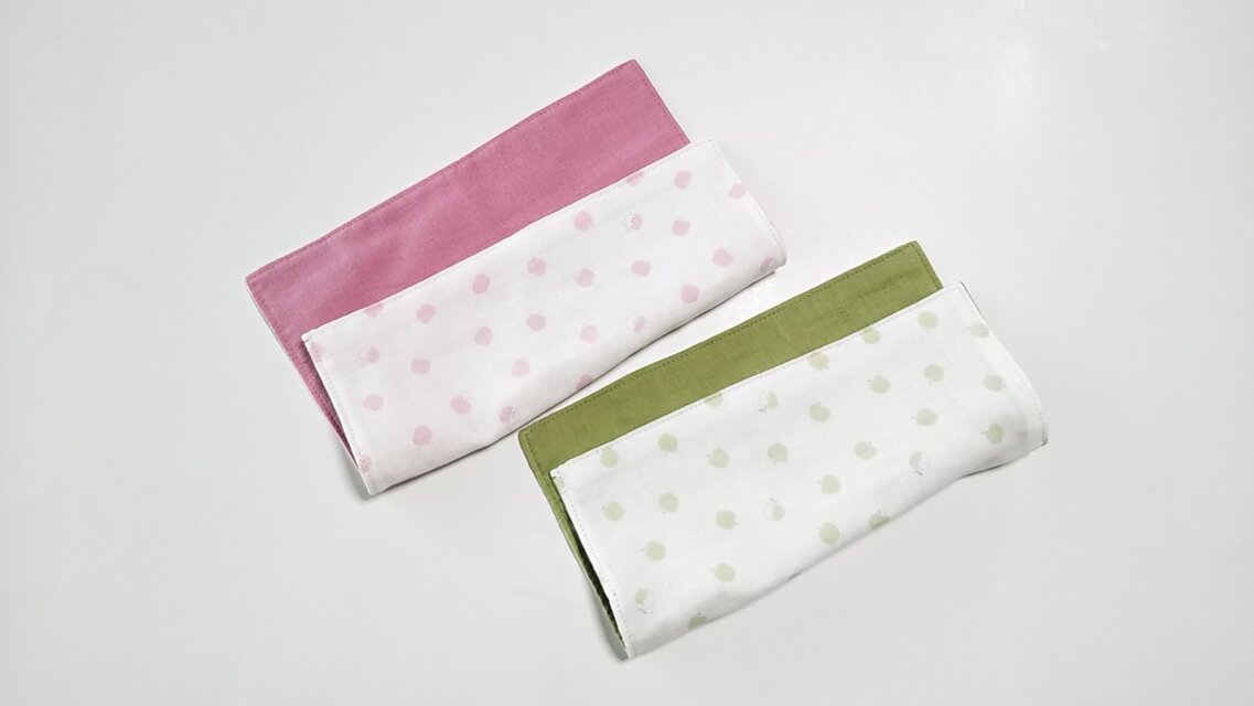 なめらかな肌ざわりのガーゼで作ったハンカチです。片面に無地を合わせました。