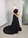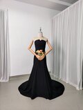 実例写真!パーティードレス ブラック ベアトップ 大人っぽい 優雅なシルエット 披露宴 二次会