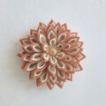 ホワイトクリームの花びらを落ち着いた橙色で縁取り、幾重にも重ねました。