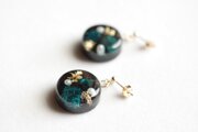 レジンアート ラウンドピアス〈眠る孔雀〉