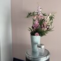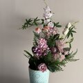 色鮮やかなブルー系の紫陽花が一足早く部屋の中で咲いたようで、部屋が一段明るく華やぎました。 とても素敵なブーケを作って頂き、どうもありがとうございました!