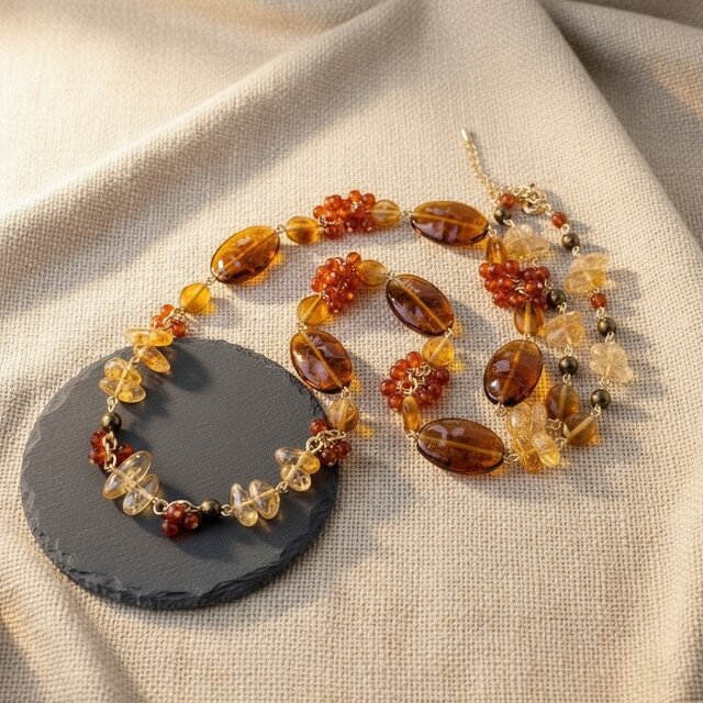 使用ビーズ チェコガラス・シトリン・カーネリアン