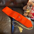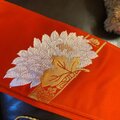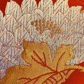 名古屋帯リメイク サッシュベルト 飾り帯 和洋折衷 LL〜4L 鮮やかな朱色と繊細な刺繍で描かれた花模様 GOB-19